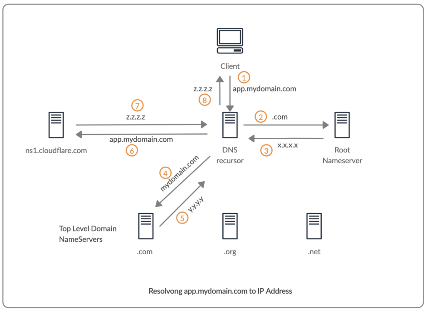 자, 우리도메인(mydomain.com)을 Cloudfare 네임서버에 설정했다고 해보자. 그러면 우리 도메인에 대한 모든 쿼리는, Cloudfare가 응답할 권한을 가진다. 그래서 이 네임서버가 Authoritative Name Server 로 불린다.